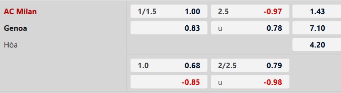 Nhận định kèo châu á AC Milan vs Genoa: