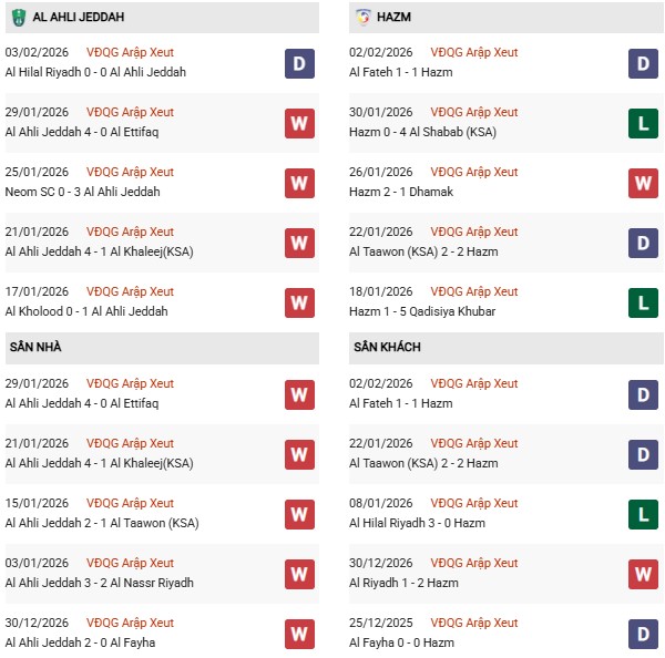 Thống kê phong độ Al-Ahli vs Al-Hazem: