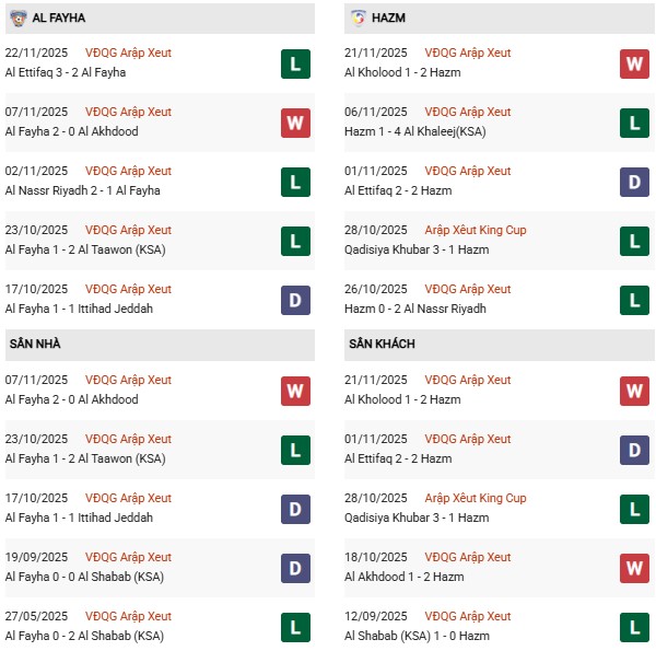 Thống kê phong độ Al Fayha vs Al Hazem: