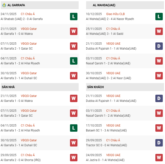 Thống kê phong độ Al Gharafa vs Al Wahda: