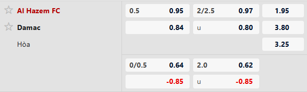 Al Hazem không thắng 6/7 trận sân nhà kể từ khi Saudi Pro League mùa hiện tại chính thức diễn ra. Damac thắng theo Handicap tới 5/6 trận sân khách gần đây thuộc giải VĐQG Saudi Arabia, bao gồm cả 1 chiến thắng khi được chấp 0,5 trái. So với Al Hazem thì Damac hứa hẹn mang tới nhiều niềm tin hơn.