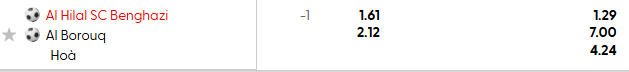 Al Hilal Benghazi sở hữu phong độ sân nhà rất ấn tượng, trong khi Al Borouq chưa thắng và chưa ghi bàn từ đầu mùa. Với sự chênh lệch rõ rệt về trạng thái thi đấu, lựa chọn đội chủ nhà là phương án an toàn và hợp lý.