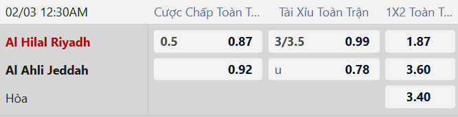 Nhận định kèo châu á Al Hilal vs Al Ahli: