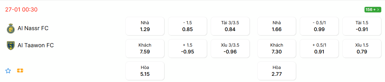 Nhận định kèo Al Nassr vs Al Taawon, 00h30 ngày 27/01