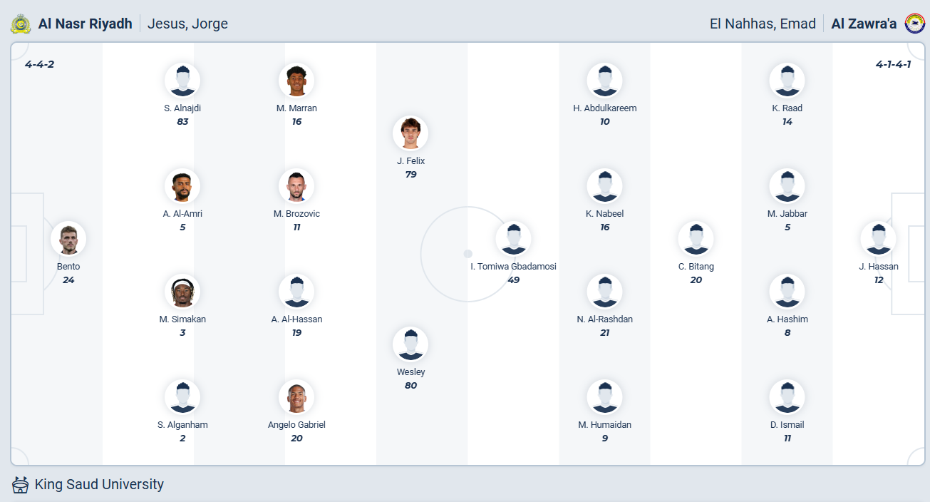 Đội hình dự kiến Al Nassr vs Al Zawraa: