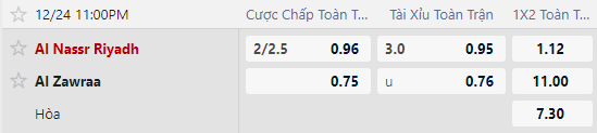 3 trận gần nhất mỗi trận Al Nassr đều ghi được 4 bàn thắng, con số rất ấn tượng. Trong khi đó Al Zawraa cũng chơi tấn công rất ổn nên trận đấu giữa 2 đội sắp tới được dự đoán có nhiều bàn thắng được ghi. Chính vì vậy Tài đang là lựa chọn đáng tin cậy vào lúc này.