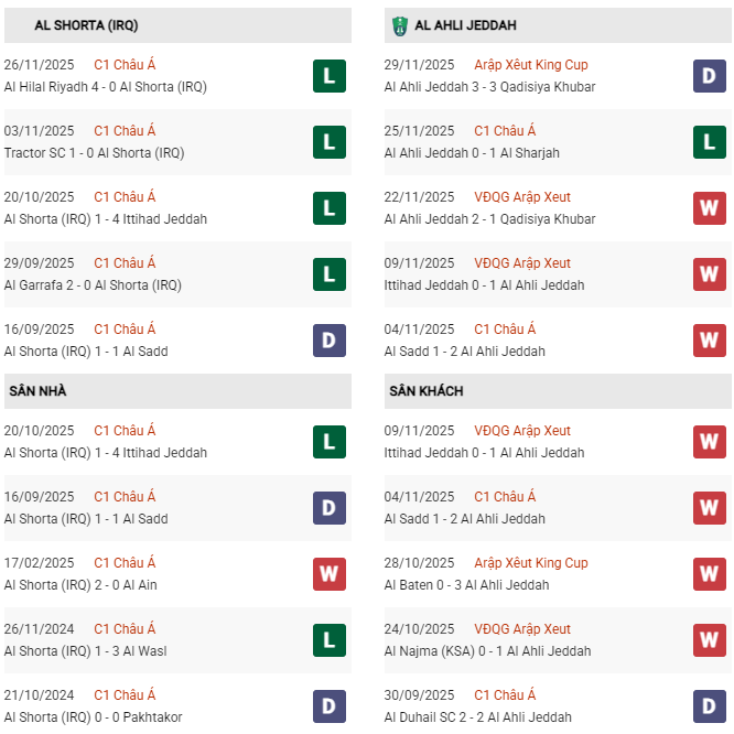 Thống kê phong độ Al Shorta vs Al Ahli Jeddah: