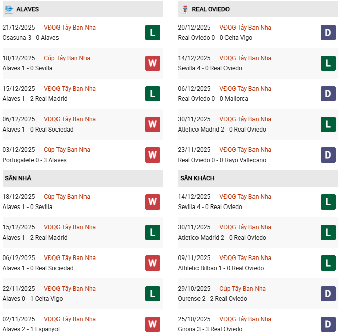 Thống kê phong độ Alaves vs Real Oviedo: