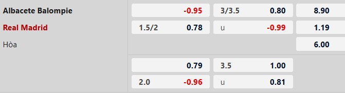 Giới chuyên gia đưa ra mức kèo châu Á Real Madrid chấp 2 hòa cho thấy sự chênh lệch rất lớn về đẳng cấp giữa hai đội. Đây là mức kèo phản ánh không chỉ khác biệt về hạng đấu, mà còn là sự đối lập về phong độ, chiều sâu đội hình và bản lĩnh thi đấu ở các trận đấu loại trực tiếp. Trước một Albacete đang chật vật ở giải hạng nhì và không thắng 3 trận gần đây, khả năng Real Madrid sớm tạo cách biệt để kiểm soát trận đấu là rất rõ ràng.