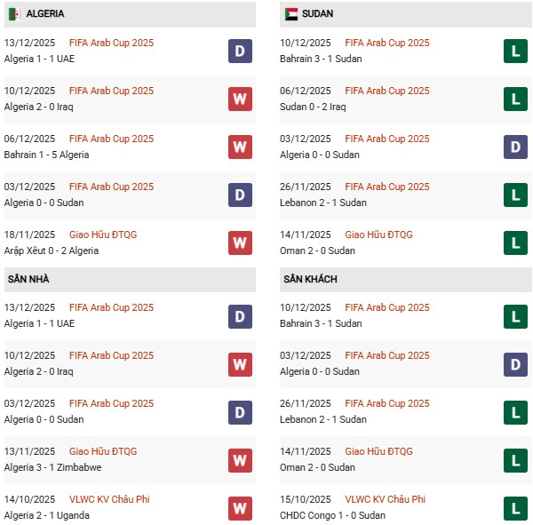 Thống kê phong độ Algeria vs Sudan:
