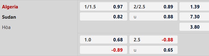 - 2 lần gặp nhau trước đó, Algeria thắng 1 và hòa 1 trước Sudan.
