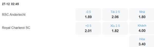 Nhận định kèo tài xỉu Anderlecht vs Charleroi: