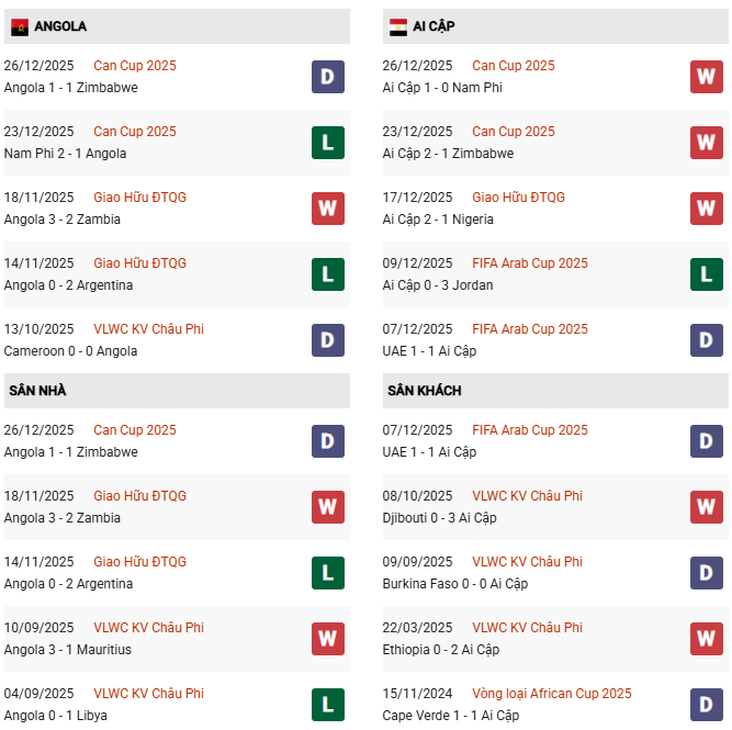 - Ai Cập thắng 2/3 trận đối đầu vừa qua trước Angola.