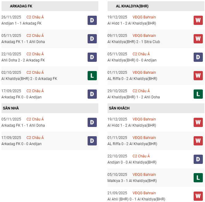 Thống kê phong độ Arkadag vs Al Khaldiya: