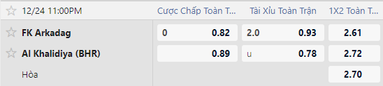 Nhận định kèo Arkadag vs Al Khaldiya, 23h00 ngày 24/12, vòng 6 AFC Cup. Mặc dù được thi đấu trên sân nhà, nhưng trước một Al Khaldiya sở hữu chất lượng đội hình đồng đều và lối chơi kỷ luật, khả năng Arkadag tạo nên bất ngờ là không cao. Đội chủ nhà nhiều khả năng sẽ phải lựa chọn lối chơi phòng ngự phản công và chờ đợi sai lầm từ đối thủ.