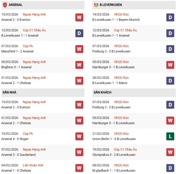 Bản lĩnh của Leverkusen: Đội bóng của Xabi Alonso không dễ bị đánh bại. Hình ảnh phong độ cho thấy họ là "vua hòa" với các trận hòa 1-1 trước Bayern Munich và Arsenal ở lượt đi. Leverkusen chơi rất kỷ luật, nhưng việc phải làm khách tại London trước một Arsenal đang đạt điểm rơi phong độ là thử thách quá lớn.