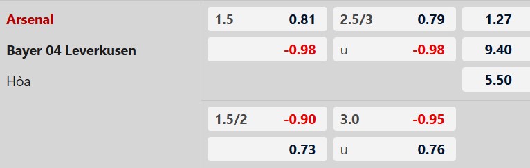 Nhận định kèo phụ Arsenal vs Leverkusen: