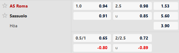 Nhận định kèo châu á AS Roma vs Sassuolo: