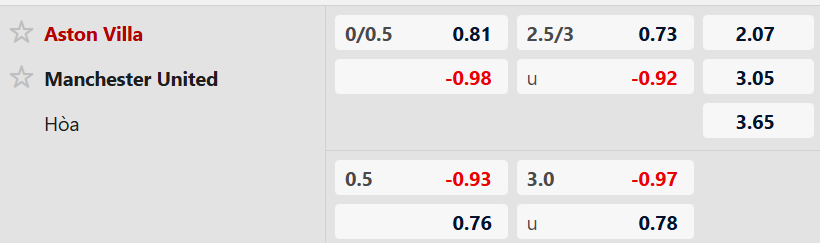 Nhận định kèo châu á Aston Villa vs Manchester United: