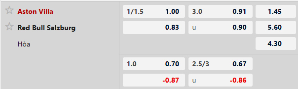 Nhận định kèo châu á Aston Villa vs Salzburg: