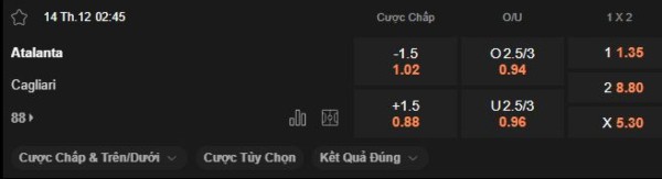 Lựa chọn tốt nhất: Atalanta -1 1/2