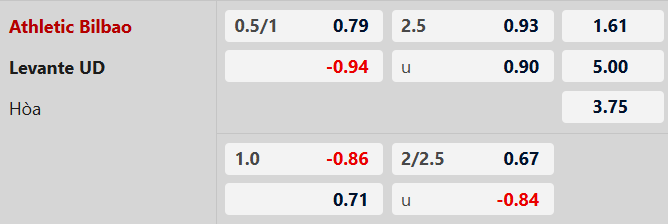 Nhận định kèo châu á Athletic Bilbao vs Levante: