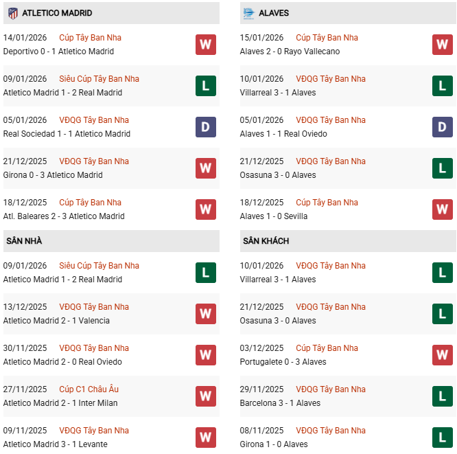 Thống kê phong độ Atletico vs Alaves: