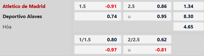 Nhận định kèo tài xỉu Atletico vs Alaves: