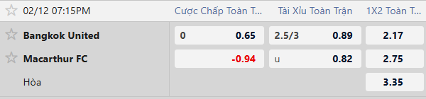Nhận định kèo Bangkok Utd vs Macarthur FC, 19h15 ngày 12/02