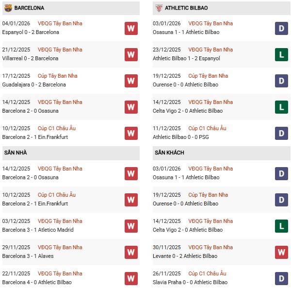 Xét về đối đầu, Barcelona thắng 4-0 ở lượt đi La Liga mùa này và chỉ thủng lưới 1 lần trong 5 trận gần nhất gặp Bilbao. Với lực lượng vượt trội và phong độ ổn định, Barca được đánh giá cao hơn hẳn để giành vé vào chung kết.