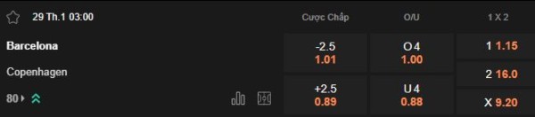 Mức kèo tài xỉu được niêm yết là 4 bàn, phản ánh đúng tính chất cởi mở của trận đấu. Barcelona sở hữu hàng công mạnh và thường ghi nhiều bàn thắng khi gặp các đối thủ yếu. Trong khi đó, Copenhagen có hàng thủ không chắc chắn, trung bình để thủng lưới hơn 2 bàn/trận tại giải đấu này. Với thế trận tấn công dồn dập từ Barcelona, khả năng trận đấu xuất hiện từ 4 bàn trở lên là khá cao.