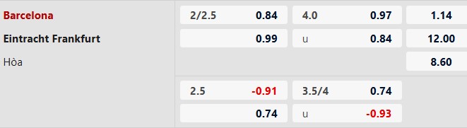Nhận định kèo châu á Barcelona vs Eintracht Frankfurt: