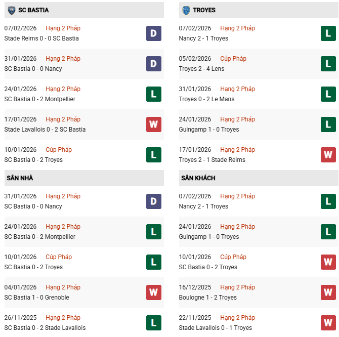 - Troyes toàn thắng cả 3 trận đối đầu vừa qua trước Bastia.