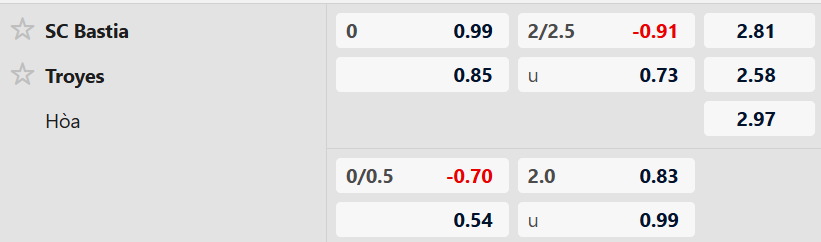 Troyes thắng Bastia trong cả 3 lần gặp nhau gần nhất. Thành tích áp đảo này cộng với chất lượng đội hình được đánh giá nhỉnh hơn thì nhiều khả năng phần thắng trận này sẽ thuộc về họ. Vậy nên với tỉ lệ kèo là 0 thì Troyes đang sáng cửa hơn.