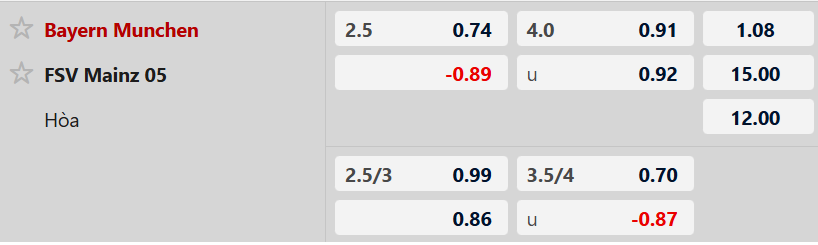 Trong 5 trận đấu gần nhất của Bayern Munich, đã có tổng cộng 22 bàn thắng được ghi (trung bình 4,4 bàn/trận), trong khi con số của Mainz là 10 bàn (trung bình 2 bàn/trận). Nhìn vào 5 trận đối đầu gần nhất giữa hai đội, chỉ có tổng cộng 23 bàn thắng được ghi (trung bình 4,6 bàn/trận). Dựa trên số liệu này, khả năng trận đấu có trên 3 bàn thắng là rất cao.