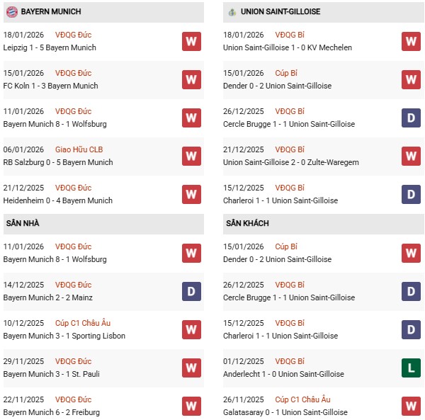 Thống kê đối đầu Bayern Munich vs Royale Union: