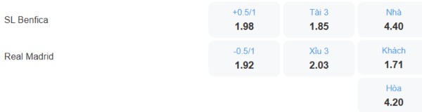 Nhận định kèo châu Á Benfica vs Real Madrid: