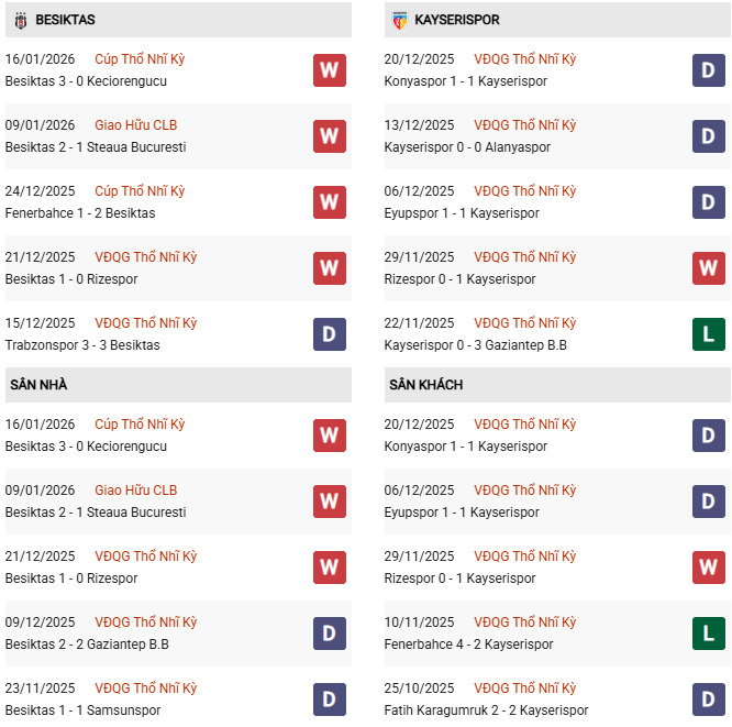 - 10 trận đối đầu gần nhất giữa 2 đội, Besiktas thắng 8, thua 1 trước Kayserispor.