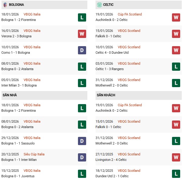 Thống kê phong độ Bologna vs Celtic: