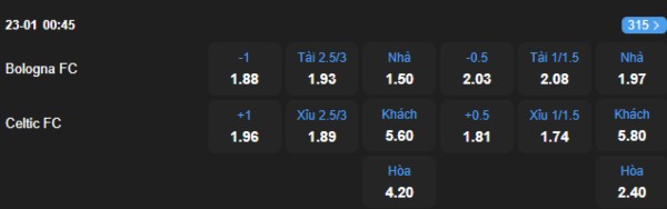 Nhận định bóng đá hôm nay Bologna vs Celtic, 0h45 ngày 23/1, Cúp C2 châu Âu. Xét về tương quan lực lượng và lợi thế sân nhà, Bologna với kèo chấp 1 trái vẫn là lựa chọn sáng giá hơn.
