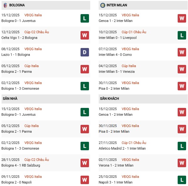 Lịch sử đối đầu: Dù Bologna từng thắng Inter vào tháng 4/2025, nhưng ở thời điểm hiện tại, chất lượng đội hình của Inter được đánh giá vượt trội hơn hẳn.