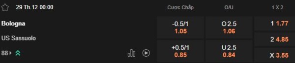 Nhận định kèo Bologna vs Sassuolo, 0h00 ngày 29/12 hôm nay