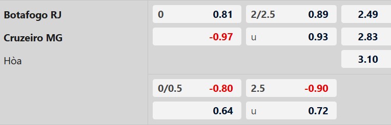 Nhận định kèo châu á Botafogo vs Cruzeiro: