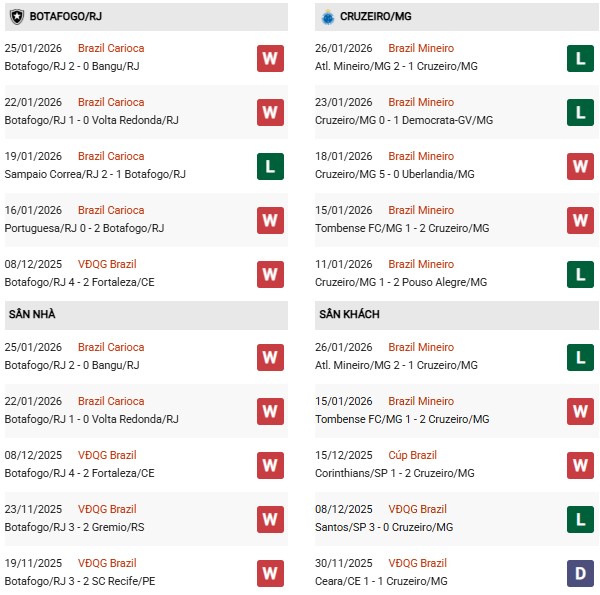 Dù lịch sử đối đầu gần đây nghiêng về phía Cruzeiro, nhưng phong độ hiện tại và lợi thế sân bãi đang ủng hộ Botafogo: