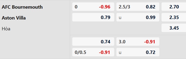 Nhận định kèo châu á Bournemouth vs Aston Villa: