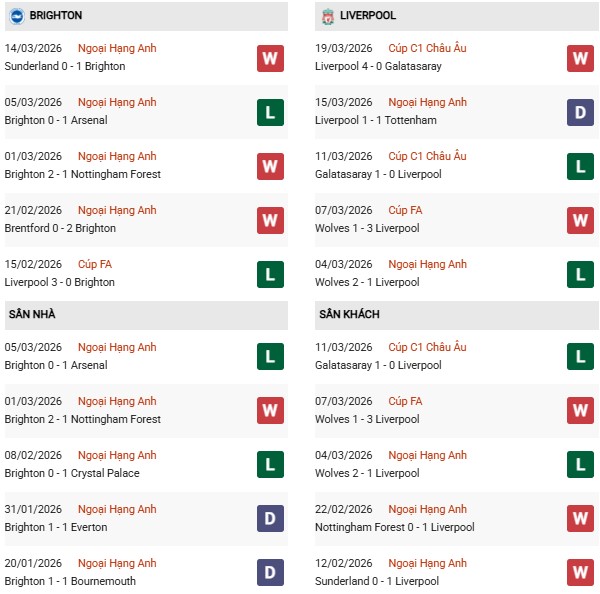 Đây được dự đoán sẽ là một trận cầu hấp dẫn với lợi thế nghiêng về phía The Kop. Liverpool đang có động lực chiến đấu mạnh mẽ trong cuộc đua Top 4, trong khi Brighton đang gặp khủng hoảng phong độ kéo dài.