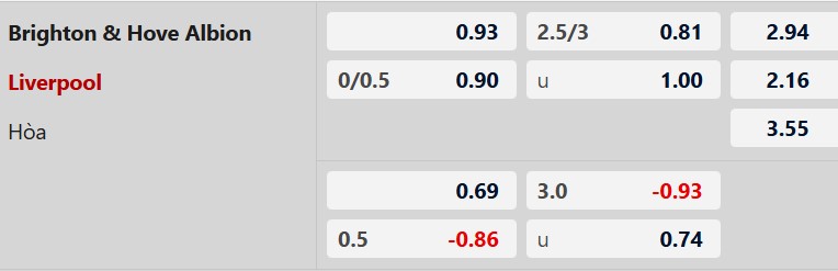 Tổng bàn thắng ở mức vừa phải: 8/10 trận sân nhà gần nhất của Brighton có tối đa 3 bàn. 8/12 trận sân khách vừa qua của Liverpool cũng chung kịch bản. Như vậy, dù trận đấu có nhiều bàn thắng nhưng nhiều khả năng sẽ dừng ở mức 2-3 bàn, không bùng nổ quá mức.