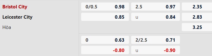 Nhận định kèo tài xỉu Bristol City vs Leicester: