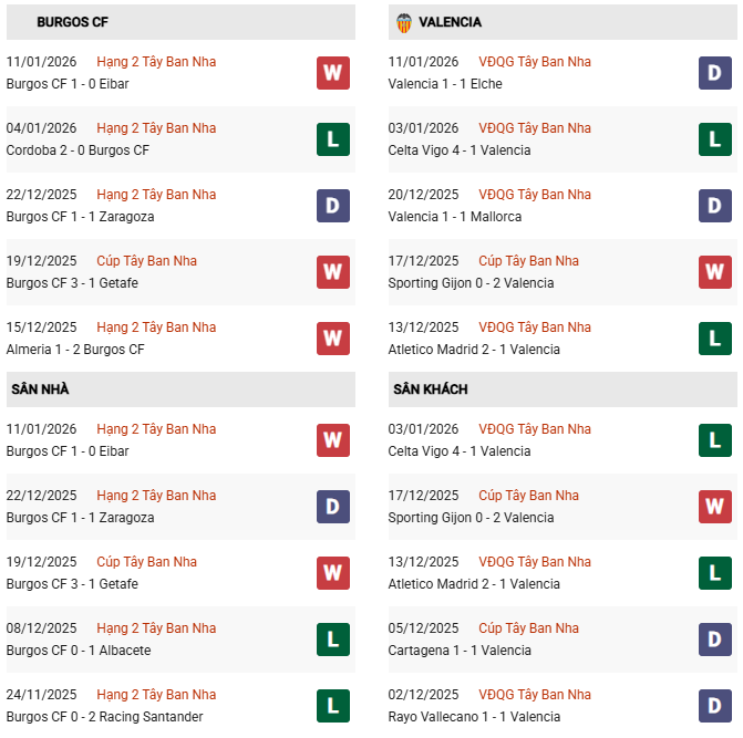 Burgos bước vào trận đấu này với sự tự tin nhất định sau chiến thắng tối thiểu 1-0 trước Eibar tại La Liga 2. Ở trận đấu đó, đội chủ nhà kiểm soát thế trận khá tốt với 52% thời lượng cầm bóng, tạo ra 11 cú dứt điểm và có 4 lần đưa bóng đi trúng đích. Bàn thắng của Córdoba không chỉ mang về 3 điểm quan trọng mà còn giúp Burgos cải thiện tinh thần trước khi bước ra sân chơi Cúp Nhà Vua. Tuy nhiên, điểm yếu lớn nhất của Burgos lại nằm ở hàng phòng ngự, khi họ đã để thủng lưới ở 5/6 trận gần nhất, một con số khiến người hâm mộ khó có thể yên tâm.