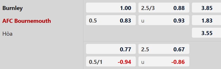 Nhận định kèo châu á Burnley vs Bournemouth: